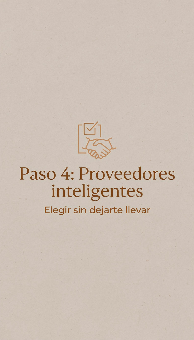 visión → prioridades → presupuesto → proveedores → tiempos.